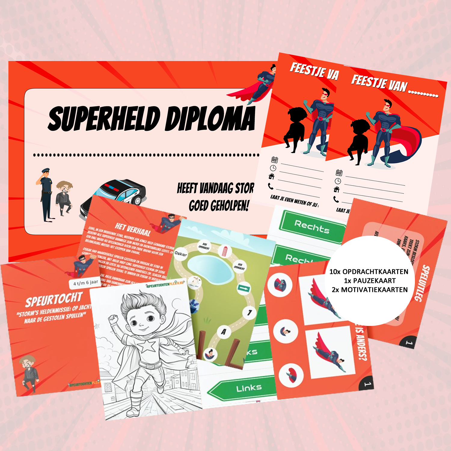 Dit pakket bevat alle benodigdheden om een onvergetelijk feestje te organiseren waarin de kinderen echte helden kunnen zijn. De speurtocht wordt geleverd als printvriendelijke bestanden – print dus gerust zoveel exemplaren als u nodig hebt.